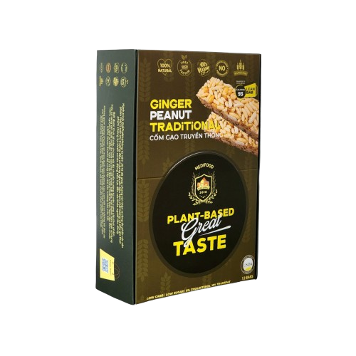 Thanh Cốm Gạo Truyền Thống của chúng tôi đậm mùi gừng, đậu phộng và nước cốt dừa, sẽ đưa bạn vào một chuyến du hành hoài niệm về những hương vị đặc trưng của tuổi thơ Việt Nam, tạo nên một món ăn vặt không chỉ ngon mà đầy xúc cảm.